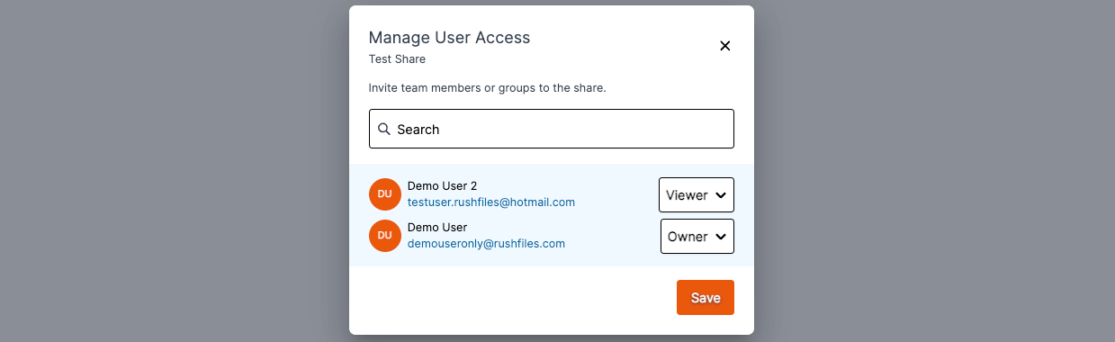5. Invite users, assign the appropriate access rights, and click the Save button to complete the process.