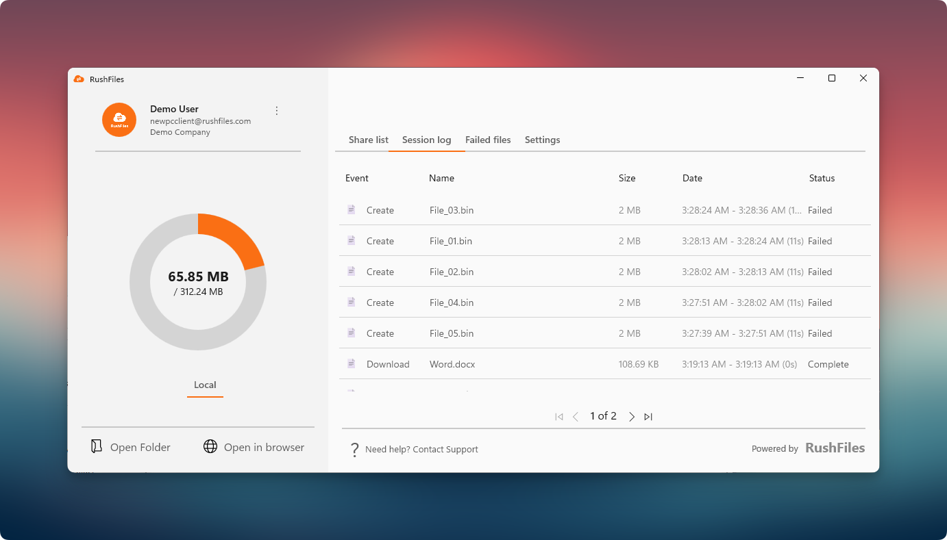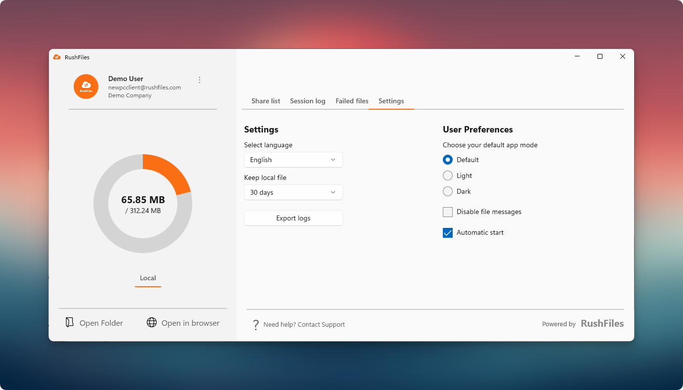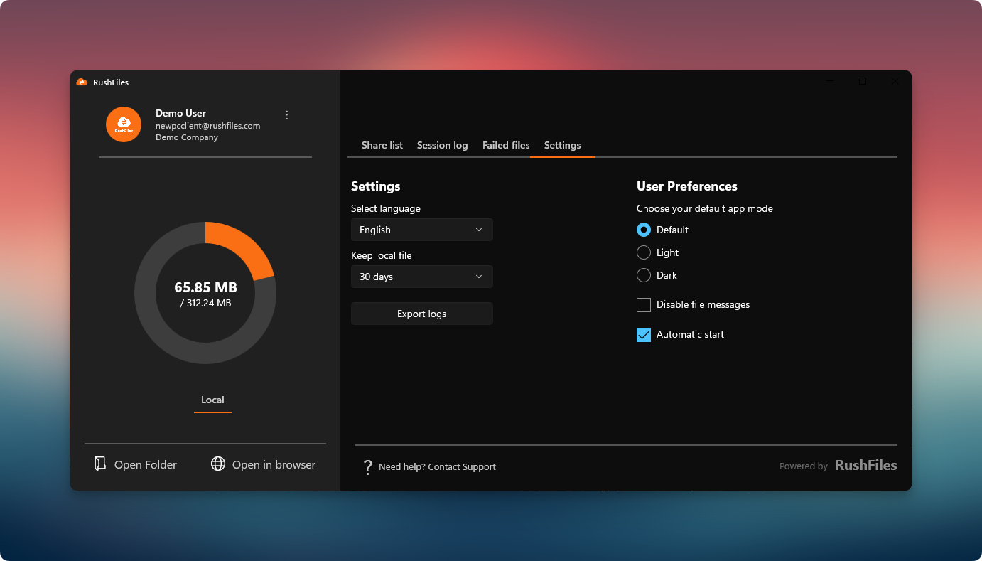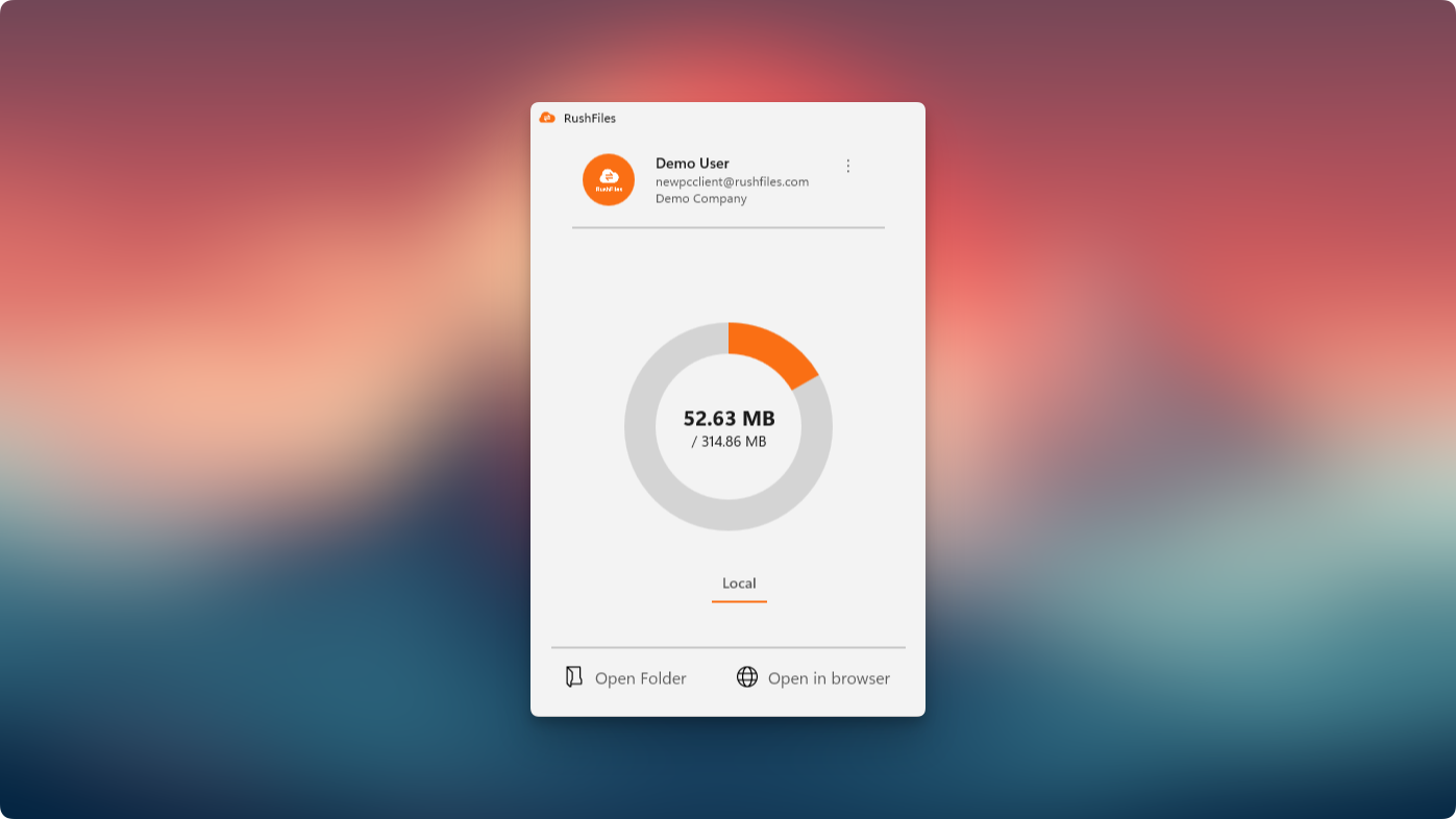 • Open in Browser – Opens the RushFiles web client in the default browser.