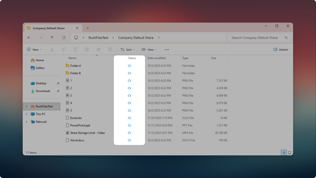 - Files initially show the cloud icon when they have not been downloaded yet.