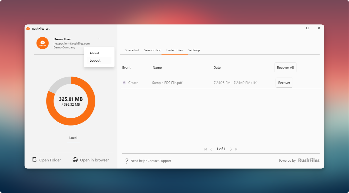 Partners and resellers, please contact the RushFiles Support team by submitting a new ticket at: Submit New Support Ticket