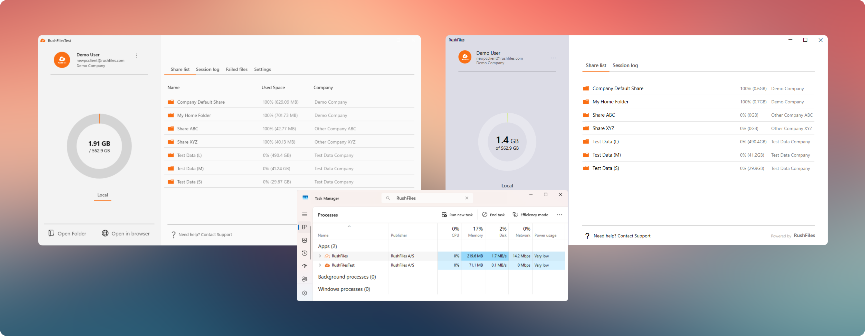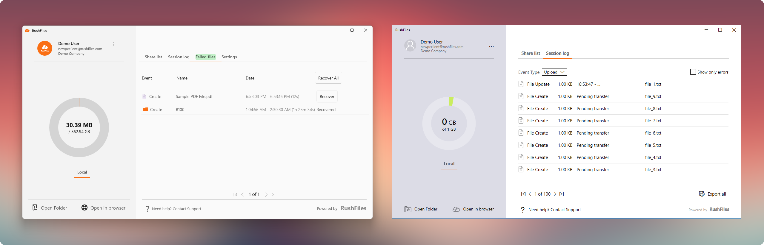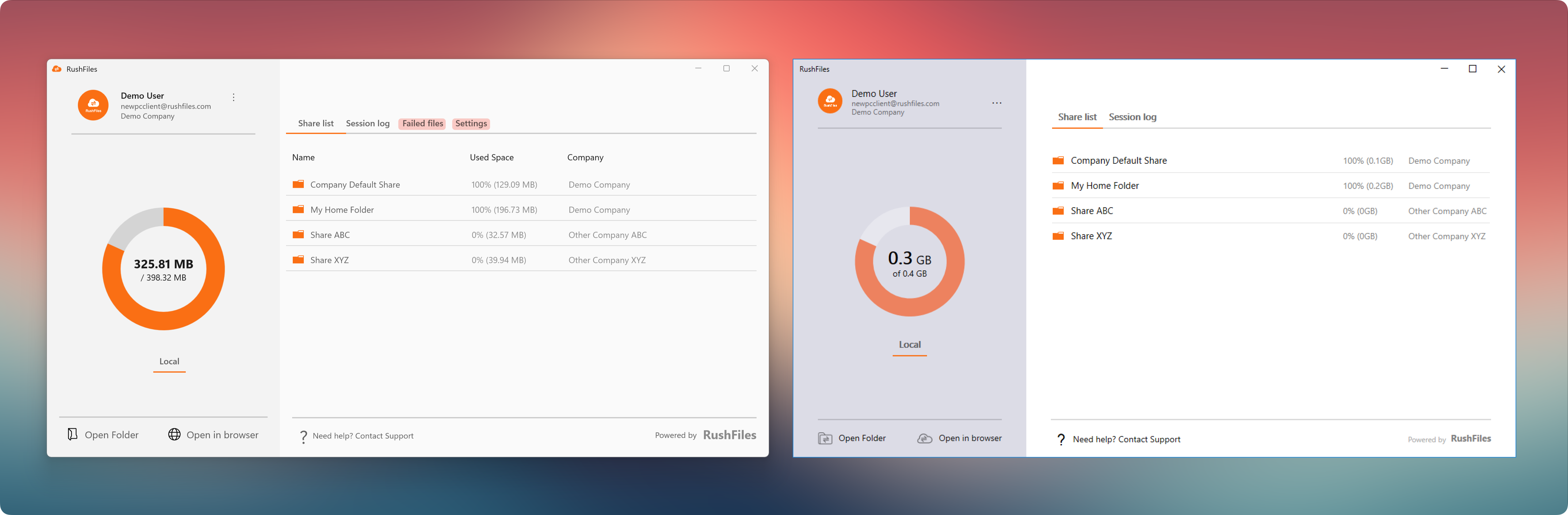 The RushFiles Windows App is a redesigned native desktop application that gives users direct access to their files and shares from a Windows computer. Built with performance and stability in mind, this new client offers a smoother, faster, and more intuitive experience compared to its predecessor, the PC Client.