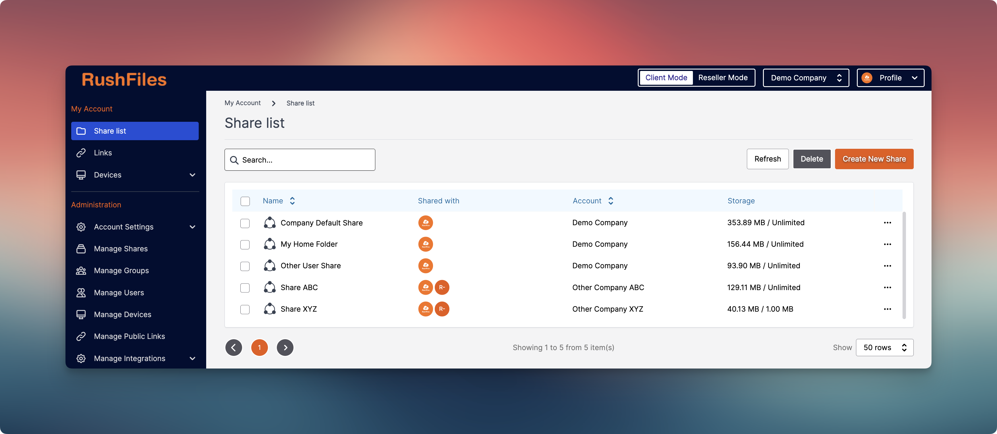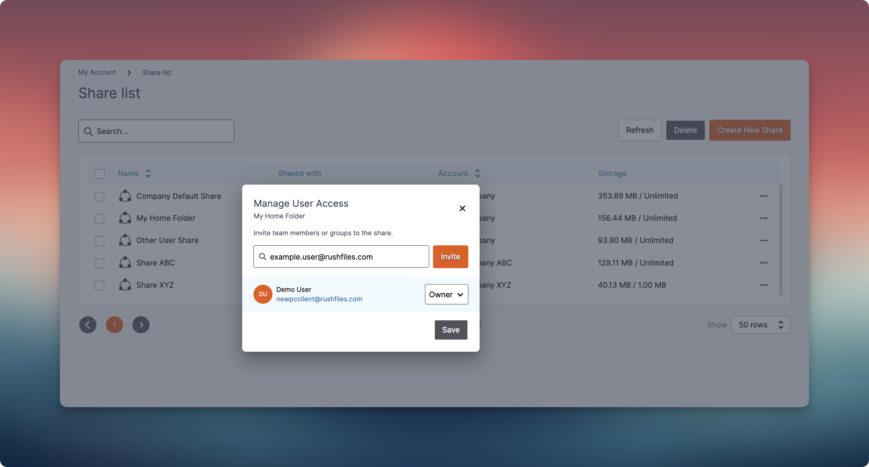 All files in RushFiles are stored within a Share.