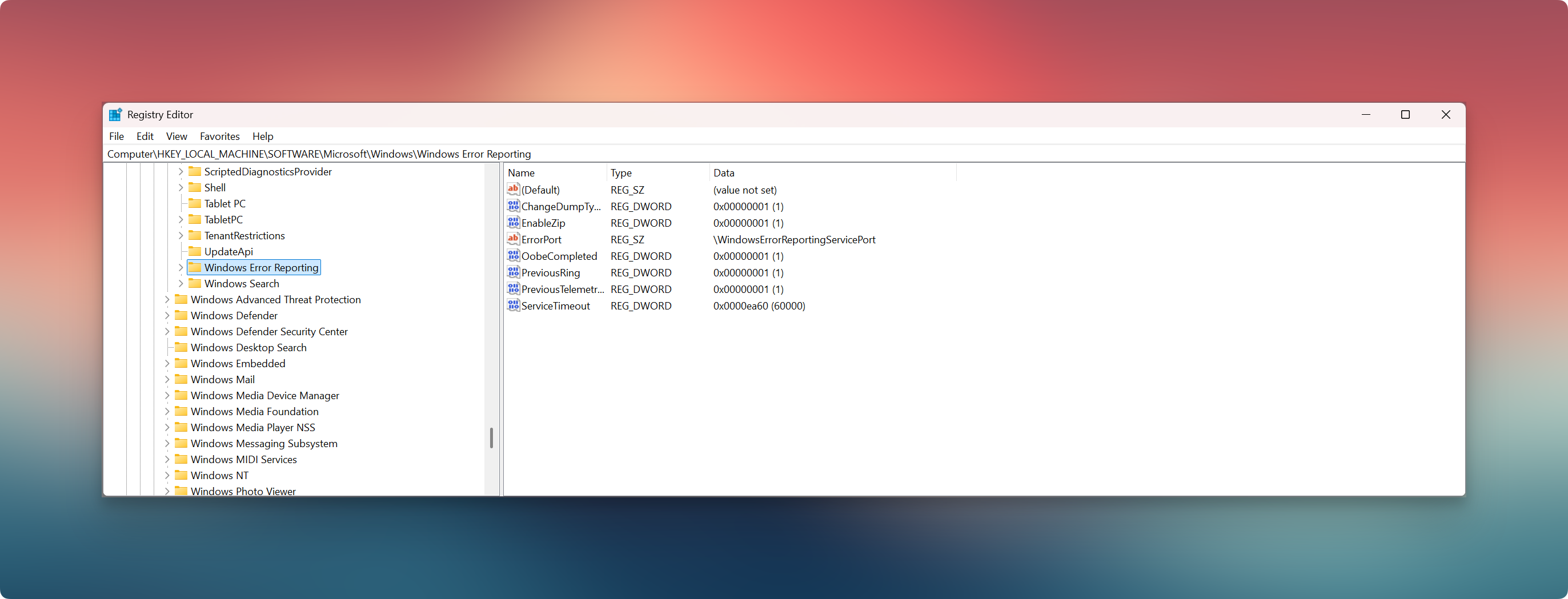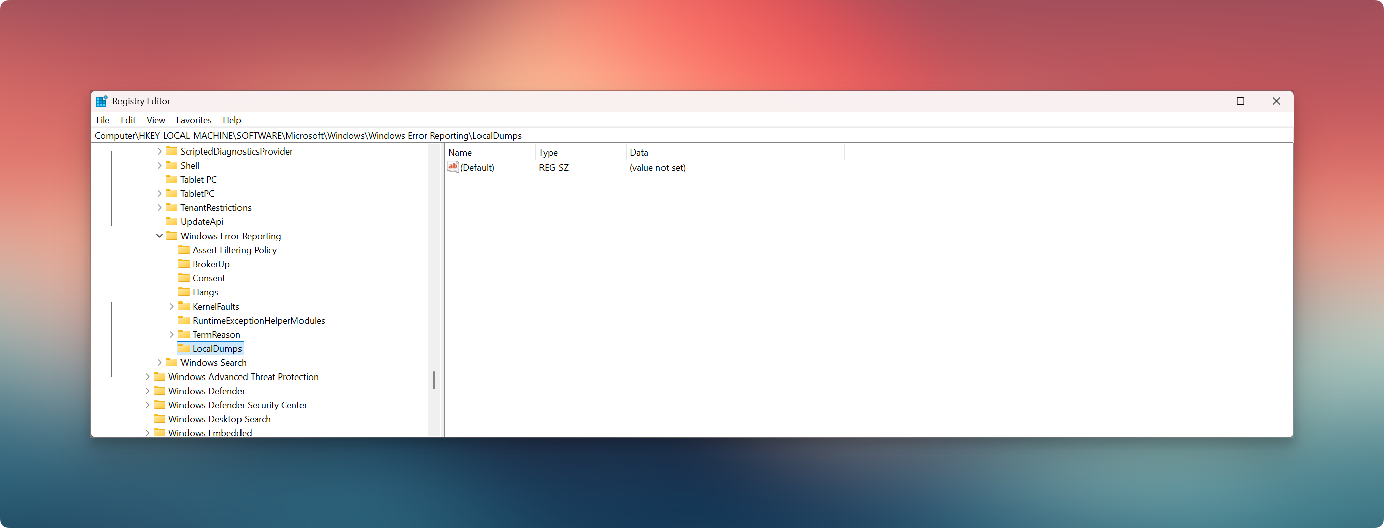 HKEY_LOCAL_MACHINE\SOFTWARE\Microsoft\Windows\Windows Error Reporting