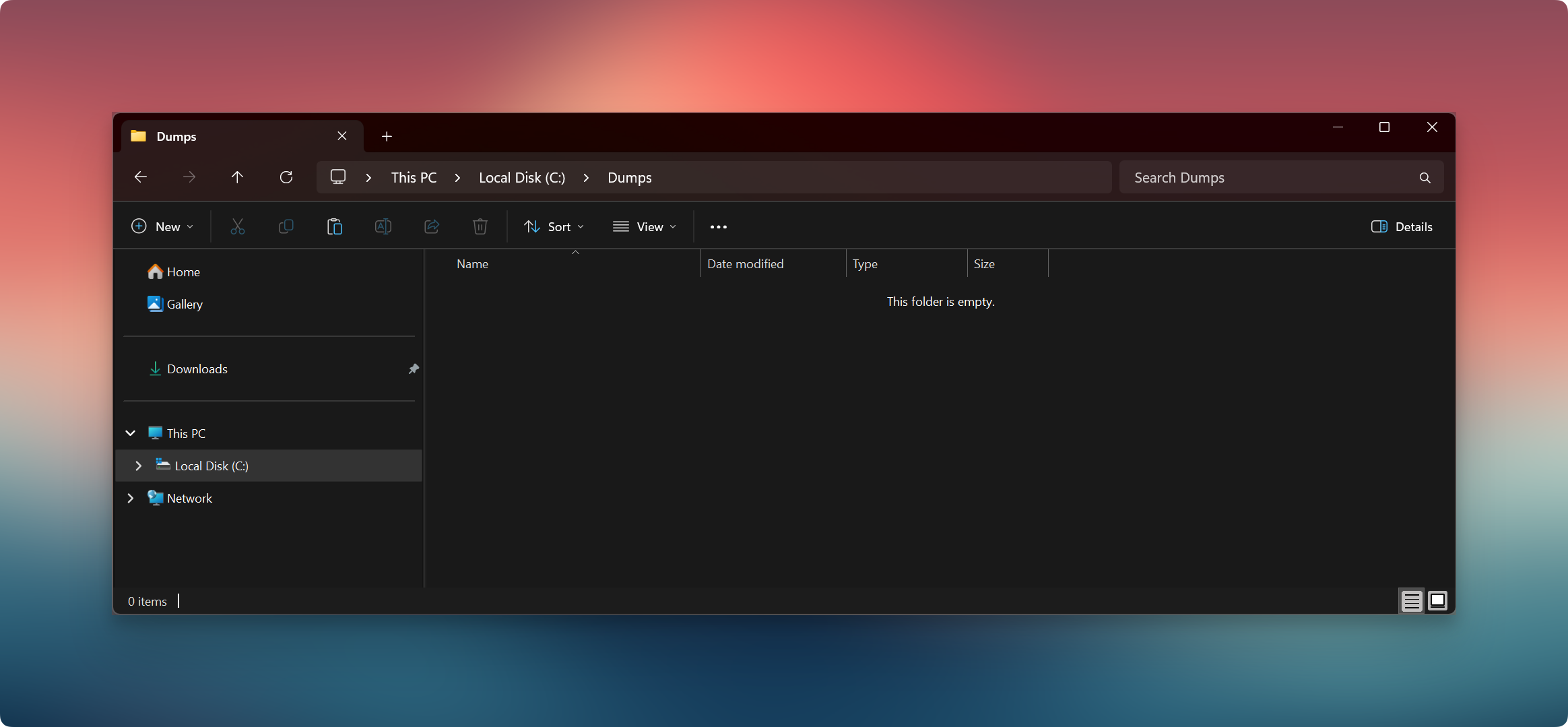 Create a new folder named: Dumps